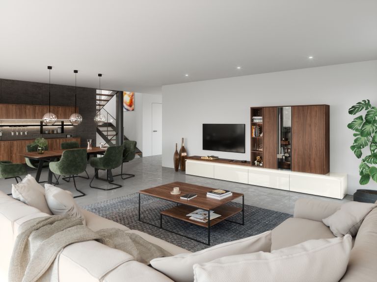 Prav tako kot pri kuhinji, lahko tudi pri dnevni sobi izbirate med različnimi elementi, vzorci, materiali in postavitvijo.